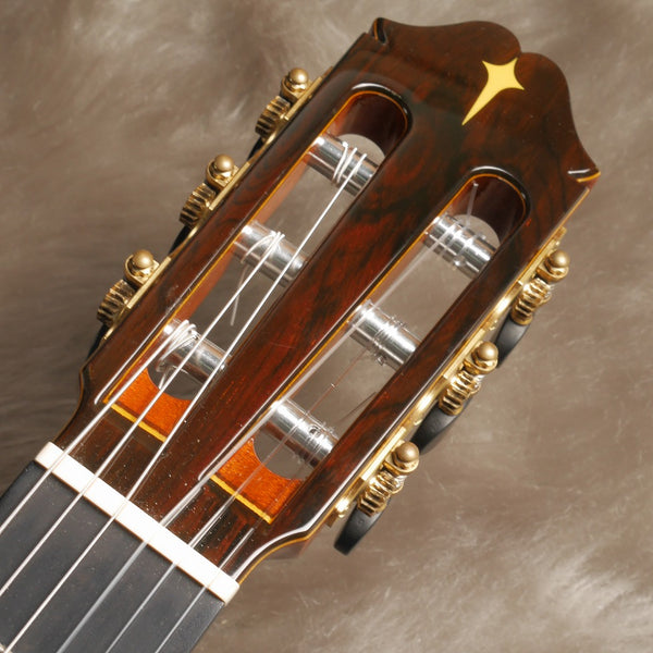 河野賢氏のデザインと哲学を継承しつつ、長年の研究と試行錯誤に基づいた独自の製作技術を展開。そのギターは、高い信頼性と演奏性、そして豊かな音量を兼ね備え、国内外のプロギタリストに多数愛用されている。