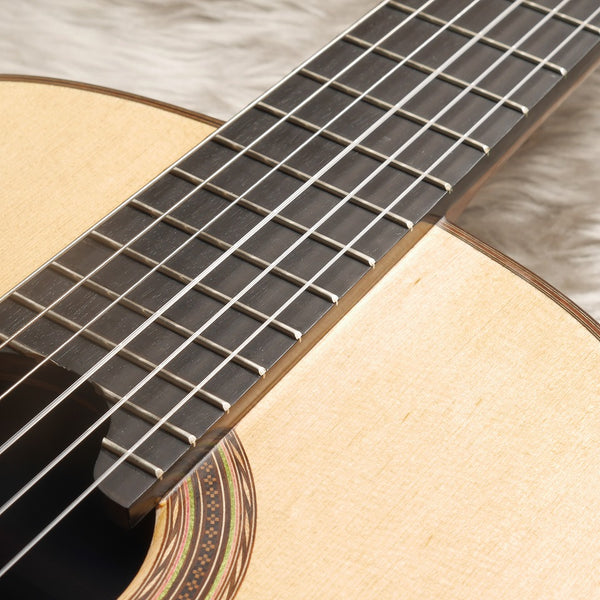 豊かに響くギターでありながら、タッチのニュアンスもつけやすい繊細さを兼ね備えています。また、プロの演奏にも耐えうる、強く弾いた際にもしっかりと受け止める懐の深さを持っています。