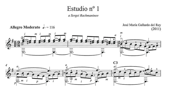 練習曲第1番(セルゲイ・ラフマニノフに捧ぐ)/練習曲第2番(クロード・ドビュッシーに捧ぐ)/練習曲第3番(アストル・ピアソラに捧ぐ)/練習曲第4番(J.S.バッハに捧ぐ)/練習曲第5番(アロンソ・ムダーラに捧ぐ)/練習曲第6番(サンティアゴ・デ・ムルシアに捧ぐ)