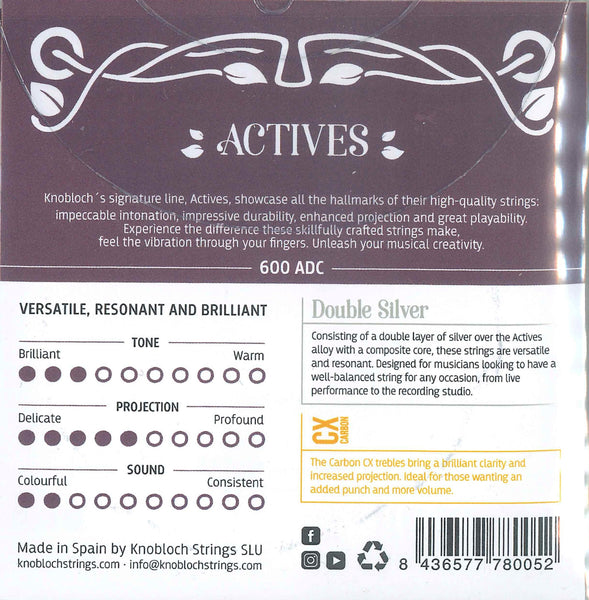 「1, 2, 3弦:フロロカーボン(CX Carbon)」「4, 5, 6弦:ダブルシルバー(Actives Double Silver)」のスーパー・ハイテンションセット
