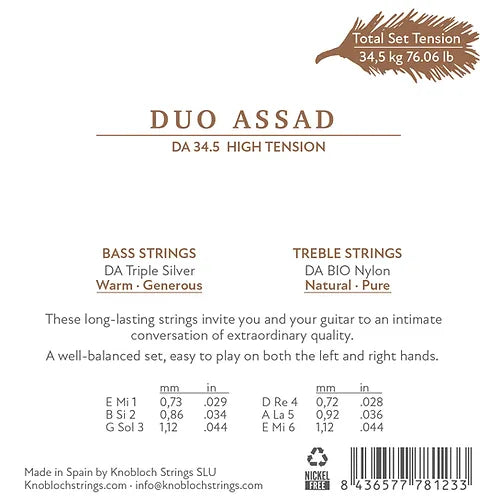 「1, 2, 3弦:バイオナイロン(BIO NYLON)」「4, 5, 6弦:Duo Assad Triple Silver」のハイテンションセット