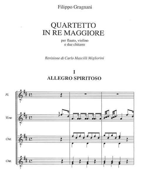 【楽譜】グラニャーニ:四重奏曲ニ長調(2G&Fl&Vn)スコア