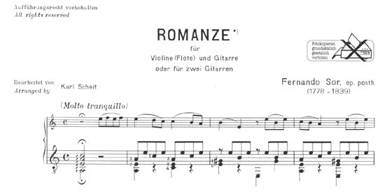 【楽譜】ソル:ラ・ロマネスカ(ロマンス)WoO(2GまたはG&Vn または Fl)[シャイト校訂]