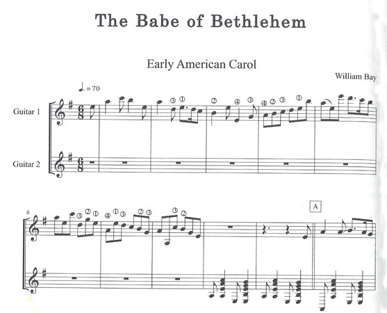 ジョン・バエズも歌った「チェリーツリーキャロル」や、グリーンスリーブスのメロディーに歌詞を付けて愛唱されている「御使いうたいて」など、アメリカやヨーロッパで愛される讃美歌、クリスマス曲を中心にギター二重奏に編曲された曲集です。全15曲収載。