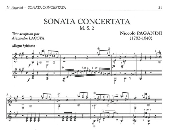 本作は、パガニーニ作曲のヴァイオリンとギターのための「協奏風ソナタ」を、ラゴヤがギター二重奏に編曲したものです。人気の高い原曲を、ギターならではの奏法、機能をふんだんに使用した編曲です。ジガンテは、それを基にしつつ、二人の実際の演奏を参考にして編集しています。