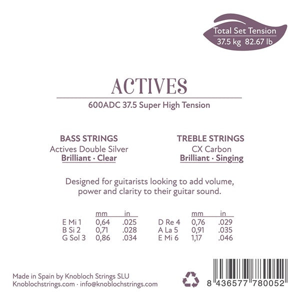 「1, 2, 3弦:フロロカーボン(CX Carbon)」「4, 5, 6弦:ダブルシルバー(Actives Double Silver)」のスーパー・ハイテンションセット