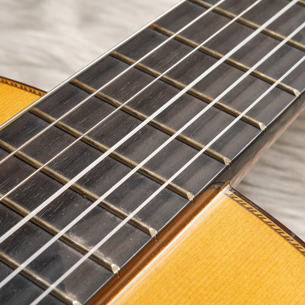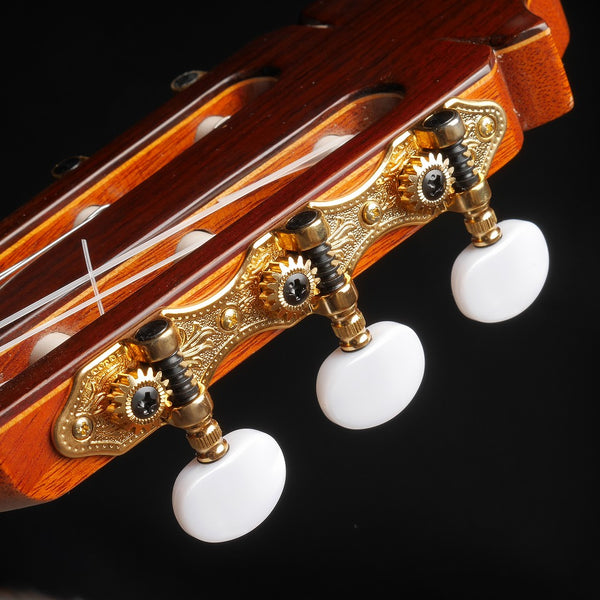本器は、同ブランドのラインナップにおいて中核を担う、非常にコストパフォーマンスに優れたミドルクラスモデルです。厳選された木材と伝統の技が融合し、スペイン製ギターの魅力を存分に味わえる仕上がりとなっています。