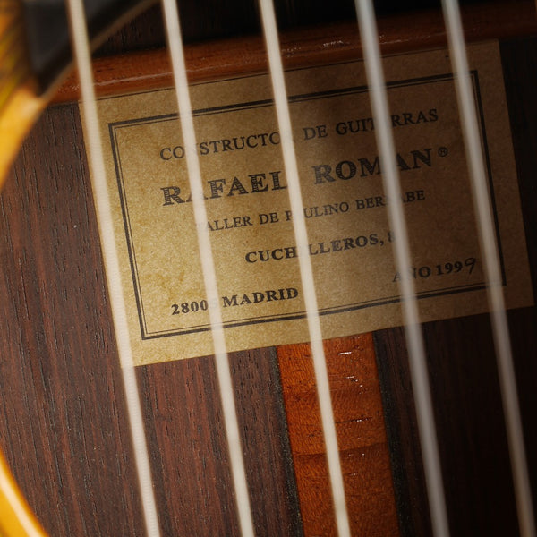 本器は、製作から四半世紀を経て、円熟した響きを持つ1999年製のギターです。ロマン氏が得意とする、伝統的なマドリッド派の音色特性を強く備えています。