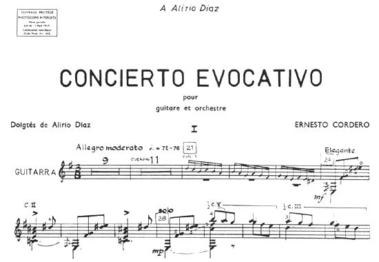 【楽譜】コルデーロ,E:コンシエルト・エボカテイーボ(Gソロ譜)[ディアス運指]