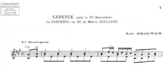 【楽譜】ブローウェル:カデンツァ(ジュリアーニの協奏曲Op.30)第1,第2楽章用の2つのカデンツァ