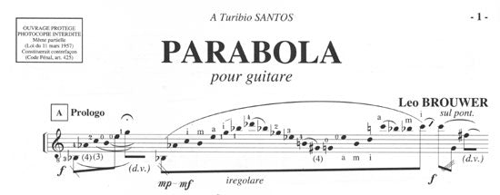 【楽譜】ブローウェル:パラボラ[サントスに献呈]