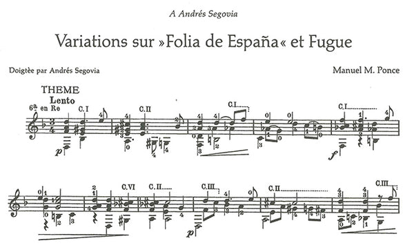 音楽的な刺激に満ちた20の変奏曲からなる大曲。その長さのため、演奏する人も多くはないが『現代ギター2020年9月号』の特集で取り上げたように、近年、多くのギタリストから再び注目を集めています。運指はセゴビア。