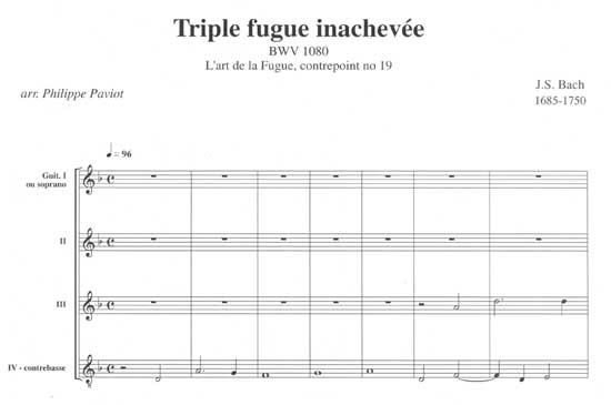 【楽譜】バッハ:未完の3声のフーガBWV1080(ギター3部&コントラバス)[パヴィオ編曲]