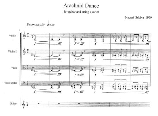 【楽譜】セキヤ・ナオミ:蜘蛛のダンス(G&弦楽四重奏)スコア&パート譜