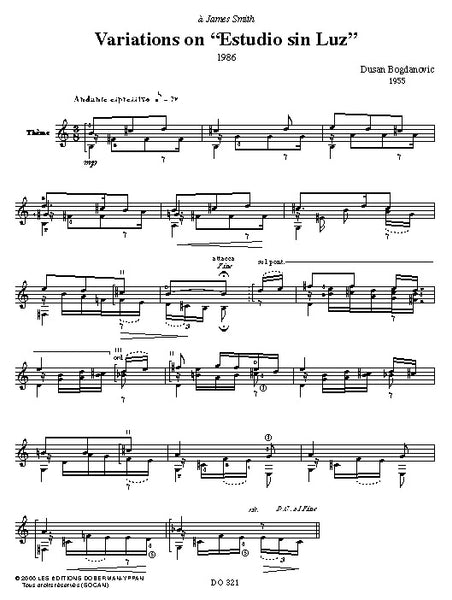 【楽譜】ボグダノヴィチ:「光のない練習曲」による変奏曲(セゴビアの名曲をテーマにした5つの変奏曲)