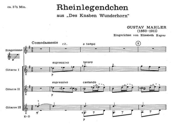 【楽譜】マーラー:ラインの伝説(歌&3G)[バイアー編曲]子供の魔法の角笛の第7曲