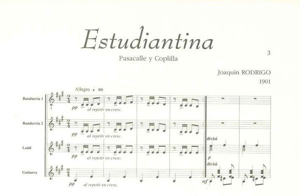 【楽譜】ロドリーゴ:エストゥディアンティーナ(パサカージェとコプリージャ)(2バンドゥーリャ,2ラウド,2G)