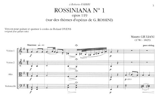 ギターと弦楽四重奏でロッシニアーナ、しかもディアンス編曲となればぜひ見てみたい楽譜です。