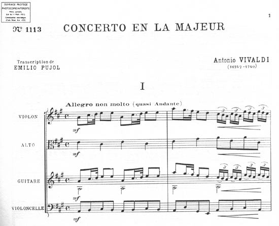 【楽譜】ヴィヴァルディ:協奏曲イ長調(G&Vn&Vla&Vc)[プジョール編曲]