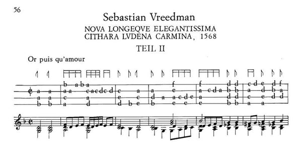 1568年刊曲集よりシターン34曲。タブラチュア,ギター編曲譜の2種類。全56頁
