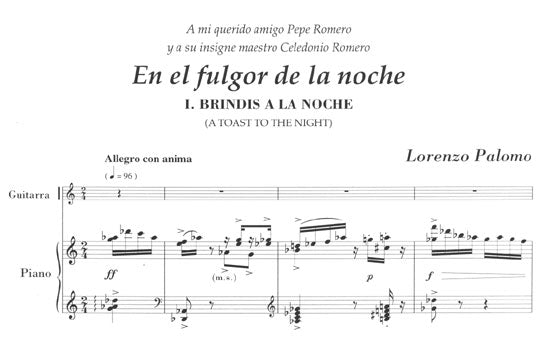 【楽譜】パロモ:幻想曲「夜のきらめきの中で」(G&Pf)[ペペ・ロメロ運指]ピアノ・リダクション。全2楽章