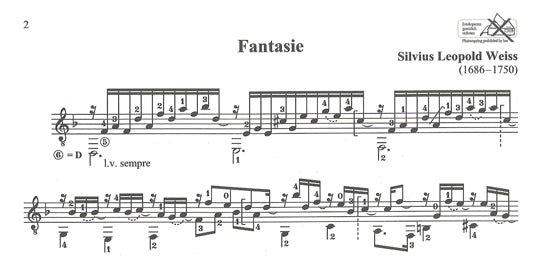 【楽譜】ヴァイス:ファンタジー、トンボー[シャイト編曲](ニュー・カール・シャイト・ギター・エディション)