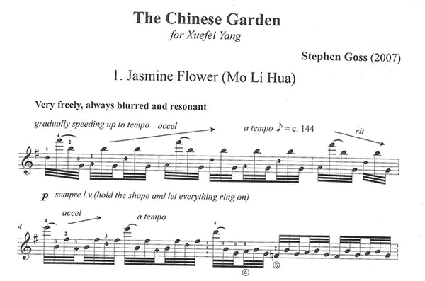 中国のギタリスト、ヤン・シュエフェイに献呈された4つの小品からなる組曲。随所に中国を感じさせるフレーズがある上級者向けの1曲。