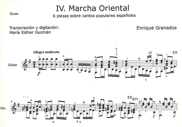 マリア・エステル・グスマン・エディション。スペインの人気ギタリスト、マリア・エステル・グスマンの編曲によるスペイン作品シリーズ。グスマン自身の編集による私家版です。中〜上級者向けの編曲。