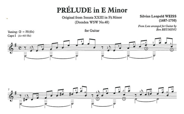 ベルギーのメトロポリス出版のヴァイス作品シリーズ。3弦をF#に調弦し、カポ1、A=415Hzで演奏する編曲。