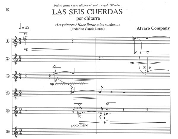 アルヴァロ・コンパニー作曲の現代曲。フェデリコ・ガルシア・ロルカの詩「ギター」にインスパイアされた作品。超難解な上級者向け作品。CD付き。