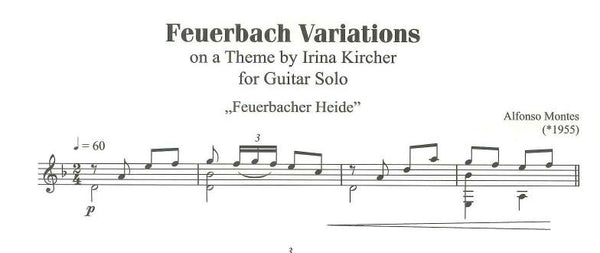 ベネズエラ系ドイツ人の作曲家アルフォンソ・モンテスによる、彼のデュオ・パートナーであるギタリスト、イリーナ・キルヒャーの哀愁と物悲しさをたたえたニ短調の主題、フォイエルバッハによる変奏曲。