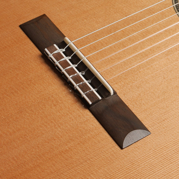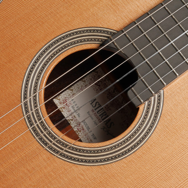 クラシックギターの課題である「音量不足」を克服するため、永年に渡って世界中のギターメーカーが試行錯誤を繰り返してきました。これを克服するためのアストリアスによるイノベーションは、表面板の軽量化による振動効率の向上です。ダブルトップの表面板は、中空ハニカム構造の素材NOMEX®を2枚の表板材に埋め込んだ特殊構造で製作されており、クラシックギターの表面板に必要な厚み・強度をしっかりと確保した上で、表面板全体の軽量化が実現されています。これによって、従来の単板材を用いて製作されたモデルに比べ、クラシックギターとしては画期的な奥行きのある大きな音量が得られるようになりました。また、クリアーな音質と豊かなサスティーンも魅力です。