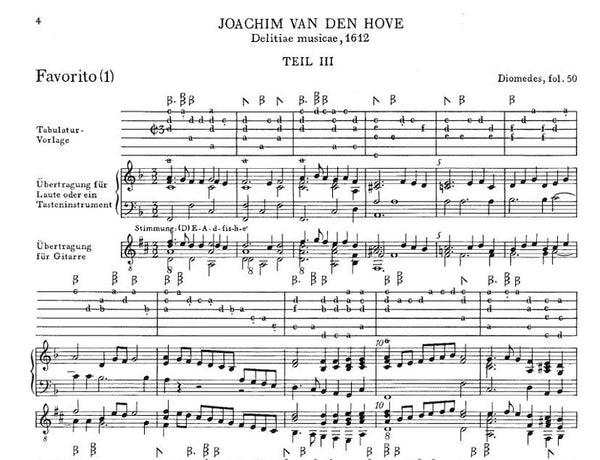 1612年刊曲集より15曲。タブラチュア,鍵盤譜,ギター編曲譜の3種類。全36頁