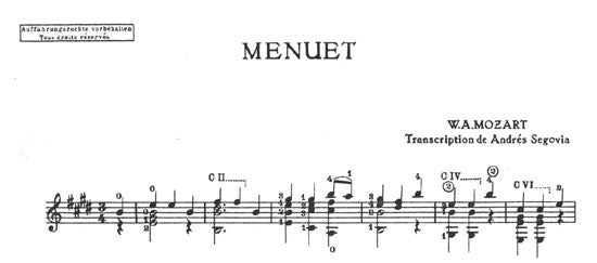 【楽譜】モーツァルト:メヌエット[セゴビア編曲]