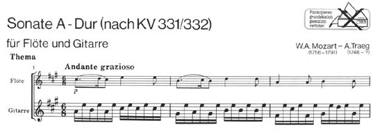 【楽譜】モーツァルト:ソナタ・イ長調 「トルコ行進曲付」K331(G&Fl)[トレーク編曲デリウス校訂]