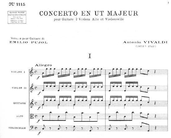 【楽譜】ヴィヴァルディ:協奏曲ハ長調(G&弦楽四重奏)[プジョール編曲]