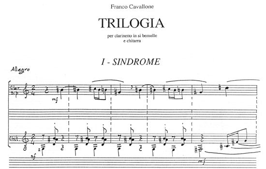 【楽譜】カヴァローネ:三部作(G&Cl)シンドローム,オスティナート,終曲