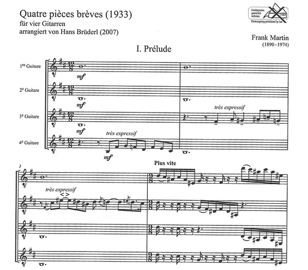 スイスの作曲家フランク・マルタンのギター作品「4つの小品」が、ハンス・ブリューデルによりギター四重奏として緻密にアレンジされました。