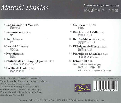 星野雅司:海の色彩、蛍、虹、暁の光、郷愁、日本寺院ファンタジー、ある秋の日、回想、谷間の小川、哀愁のルンバ、法隆寺の謎、イ短調プレリュード、エチュード第三番〜懐かしい思い出