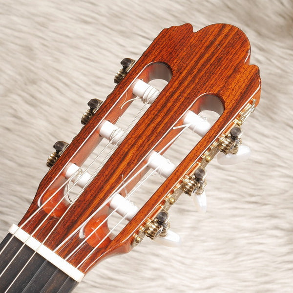 本器は、ローズウッドの横裏板に杉の単板を組み合わせたミドルクラスのモデルで、手ごろな価格ながら本格的なスペックの1本です。
