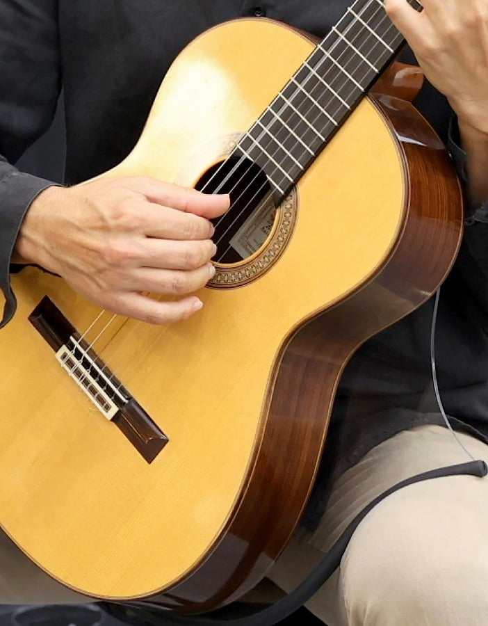 両足でギターを抱くことで体に密着し、プレイヤーの動きに追従しているような感覚を味わうことができます。
