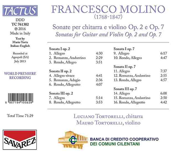 モリーノ:ギターとヴァイオリンのためのソナタOp.2、ギターとヴァイオリンのためのソナタOp.7