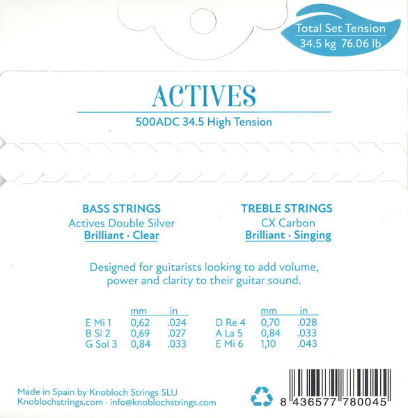 「1, 2, 3弦:フロロカーボン(CX Carbon)」「4, 5, 6弦:ダブルシルバー(Actives Double Silver)」のハイテンションセット